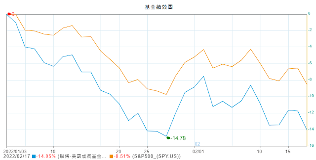 基金報酬率為-14.05%,SPY為-8.51%,基金大輸5.5%,走勢非常接近,震幅較大。