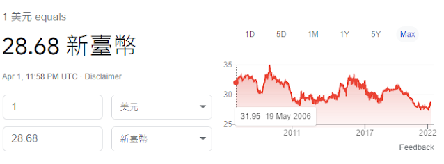 美金兌台幣匯率在2022年4月1日為1美金兌換28.68台幣,就以近16年的匯率走勢來看,技術上還是相當便宜。